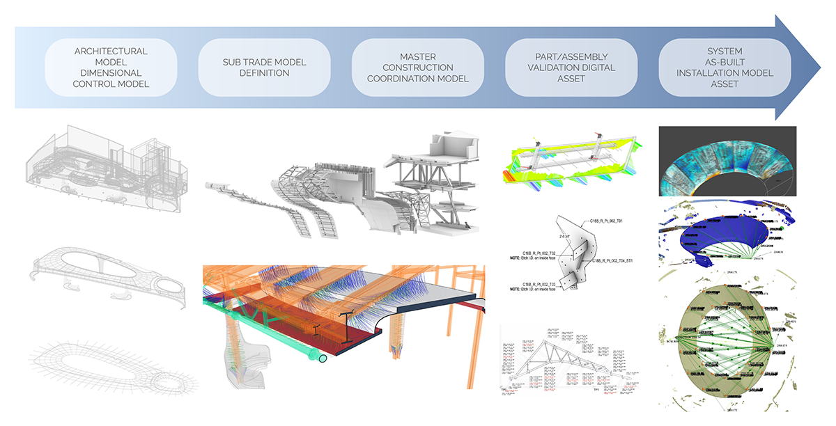Within a coordinated digital environment, architectural intent, engineering constraints, fabrication inputs, and field conditions remain aligned throughout the project lifecycle. This structured digital model of record supports informed decision-making, preserves design intent, and enables measurable control across complex scopes.